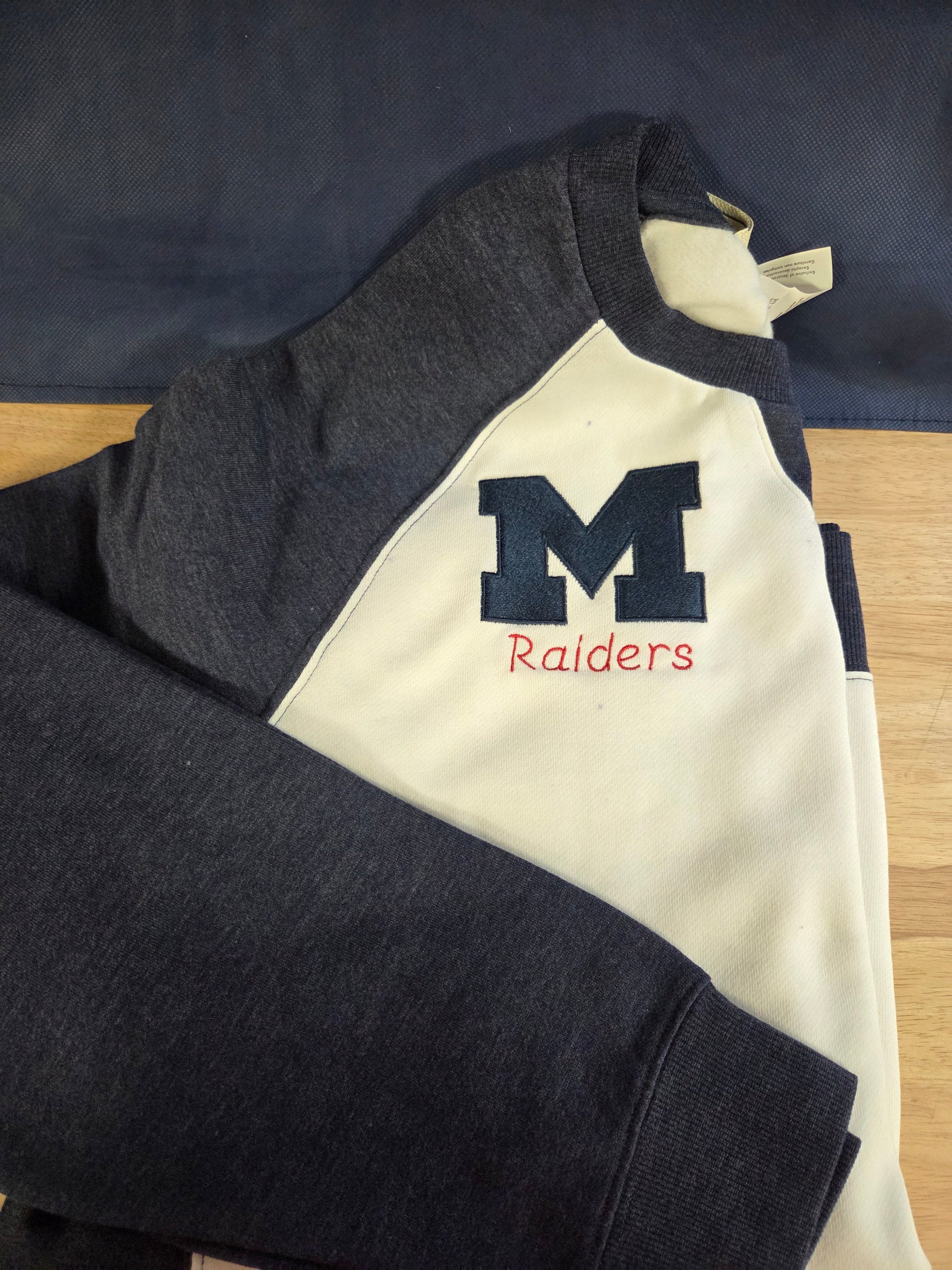 Custom Embroidered Morgan Raiders All-American Crewneck Sweatshirt. Built with ultra-soft fleece, this crew delivers everyday comfort with contrast neck detailing and raglan sleeves. Choose from Navy, Athletic Gray, or Carbon Heather(Dark Gray) Color. Runs True to Size. Ladies Sizing. Super Soft. TAT 15-21 days, weekends & holidays are not included in TAT. Wash inside out on cold. Tumble dry on a low setting. Hang dry for best results. Do not iron on the design. Do not bleach or wash with Fabric Softener. These are super soft. Other schools are available by request.