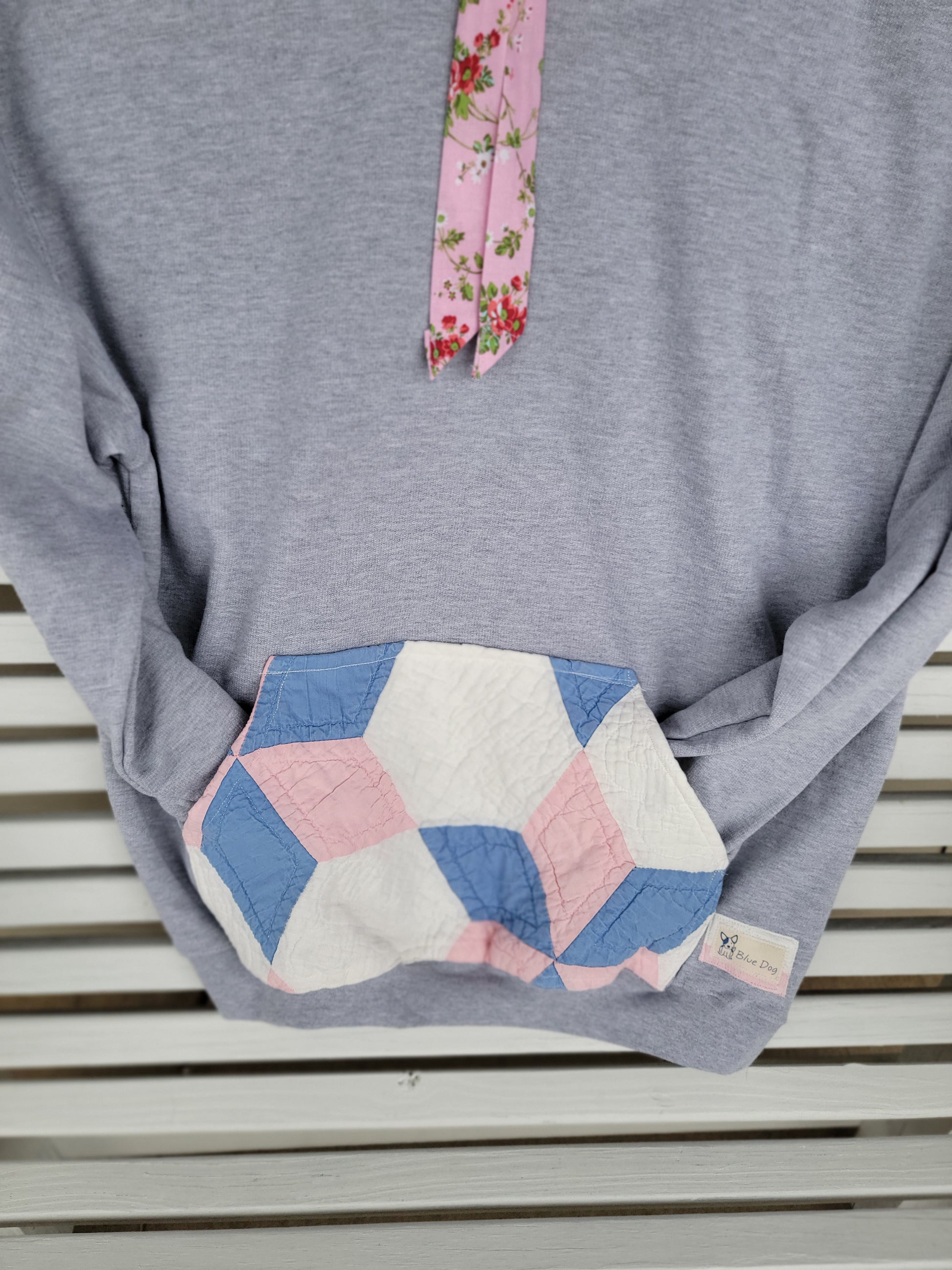 Size X- Large - Vintage Quilt Pocket Hooded Sweatshirt . Wash inside out on cold. Tumble dry on a low setting. Hang dry for best results. Do not iron on the design. Do not bleach. Unisex sizing